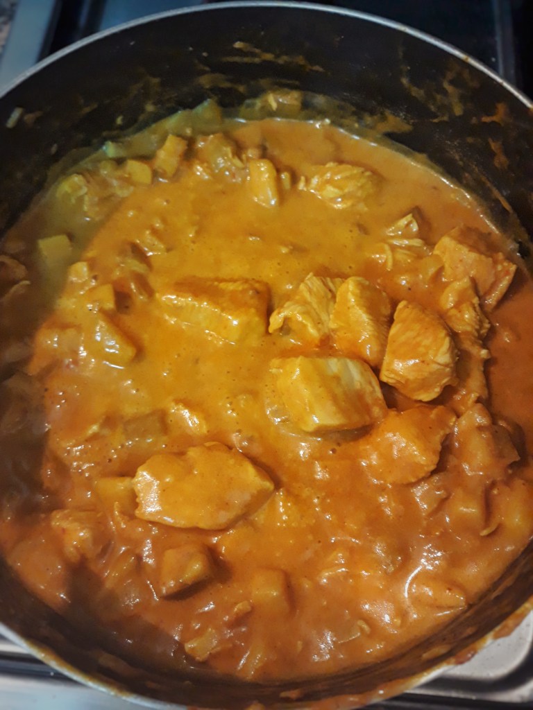 Até eu, que já fiz e comi, fiquei com vontade de repetir a dose. Esta receita é feita com peitos de frango, mas podem usar outras partes do frango e também pode usar peixe: com perca ou garoupa também fica absolutamente delicioso e é um óptimo prato para receber amigos em casa durante o fim-de-semana. Eles vão agradecer, acreditem. Num post futuro, partilharei convosco uma receita de pão naan primal, o companheiro ideal para este manjar. Mas por enquanto, vamos à receita do caril:
