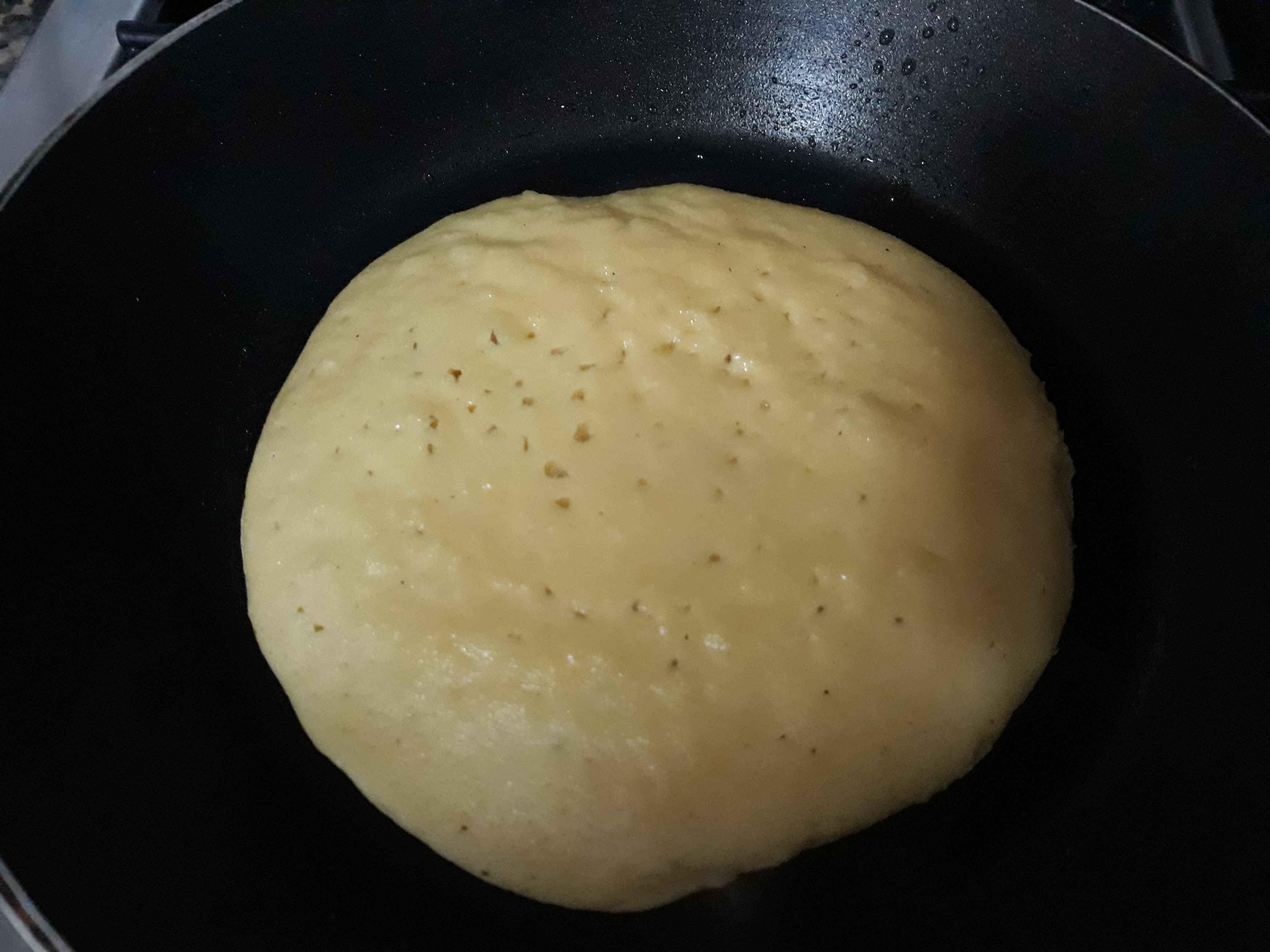 Deitar uma pequena quantidade de óleo de coco numa frigideira pequena e deixar aquecer. Quando o óleo estiver derretido, verter 3 cs da massa para a frigideira (para panquecas pequenas). Tapar a frigideira e cozinhar em lume baixo. Quando a parte de cima tiver furinhos e o meio não estiver líquido, virar e deixar cozinhar do outro lado mais um minuto. Repetir até esgotar a massa. Já está!