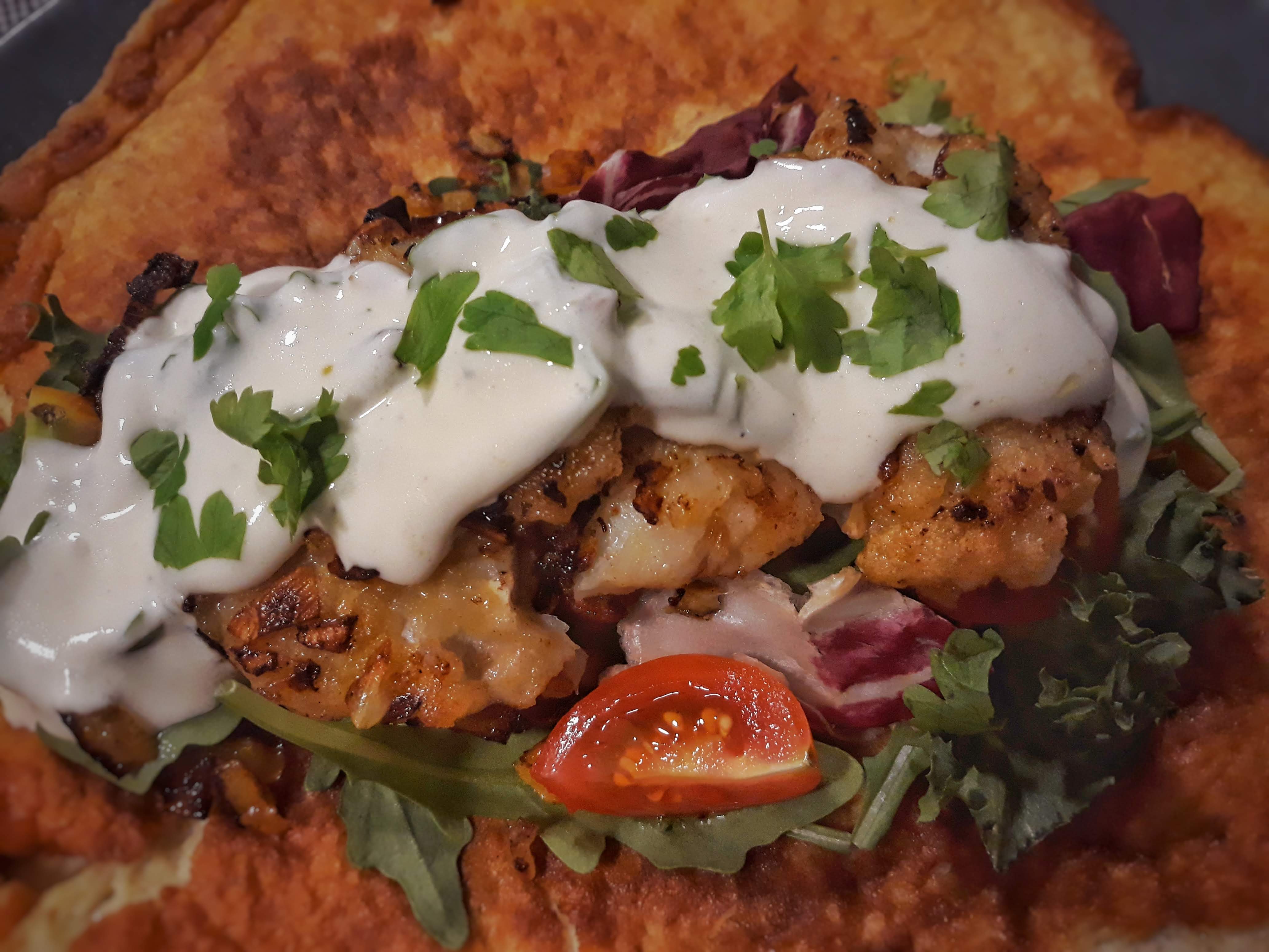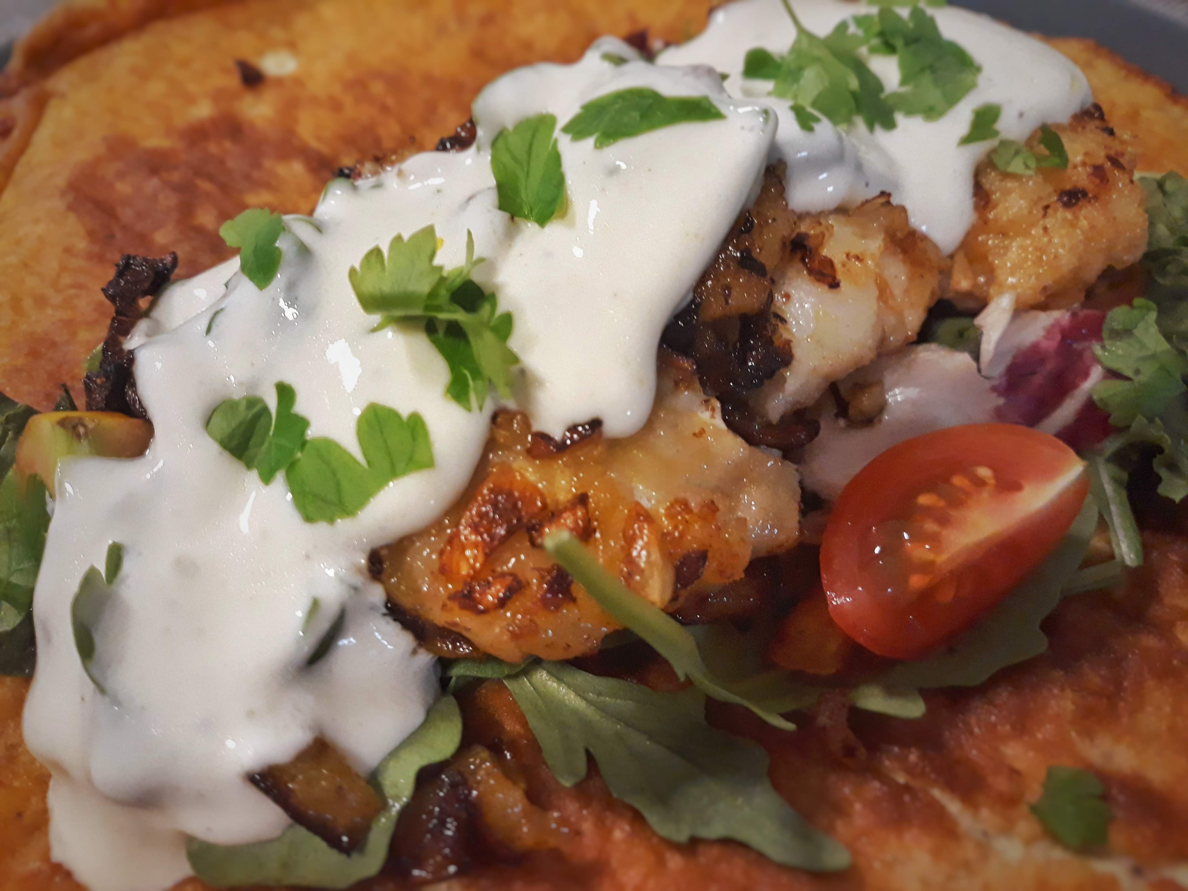 O rolo Viking original é um dürüm com os ingredientes típicos de um döner kebab, mas em tamanho XXL – e é muito popular por aqui. Embora goste de döner (e, se também gostarem, devem comer num sítio de confiança e pedir para comer no prato, sem molhos, a não ser que os ingredientes sejam bons. Há muitos restaurantes que já são paleo-friendly!), estava-me a apetecer uma coisa diferente (ou… arriscada!), pelo que decidi usar peixe, vegetais e molho de natas azedas ou crème fraîche. Vamos à receita: