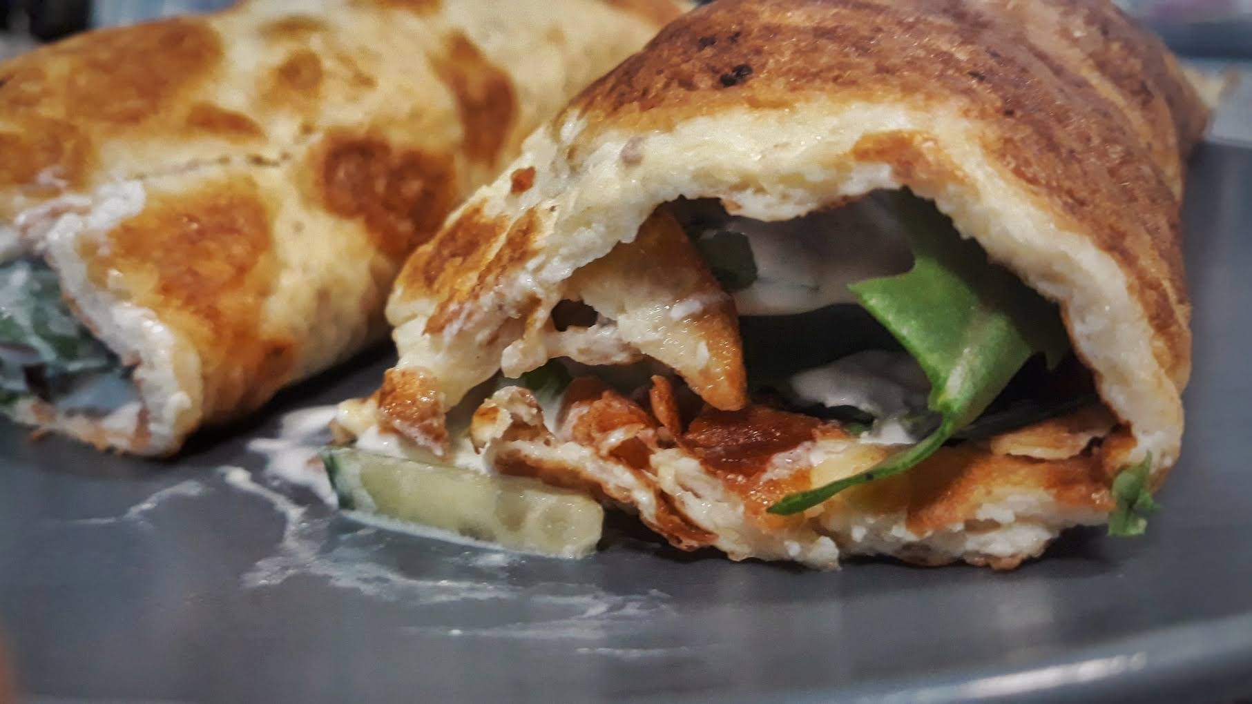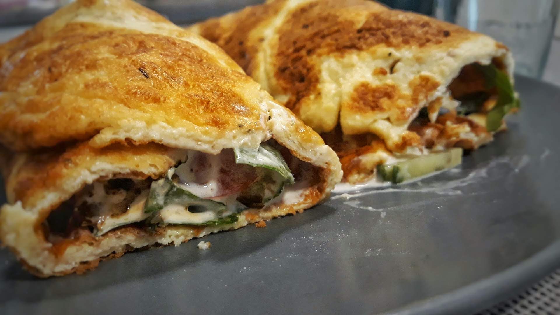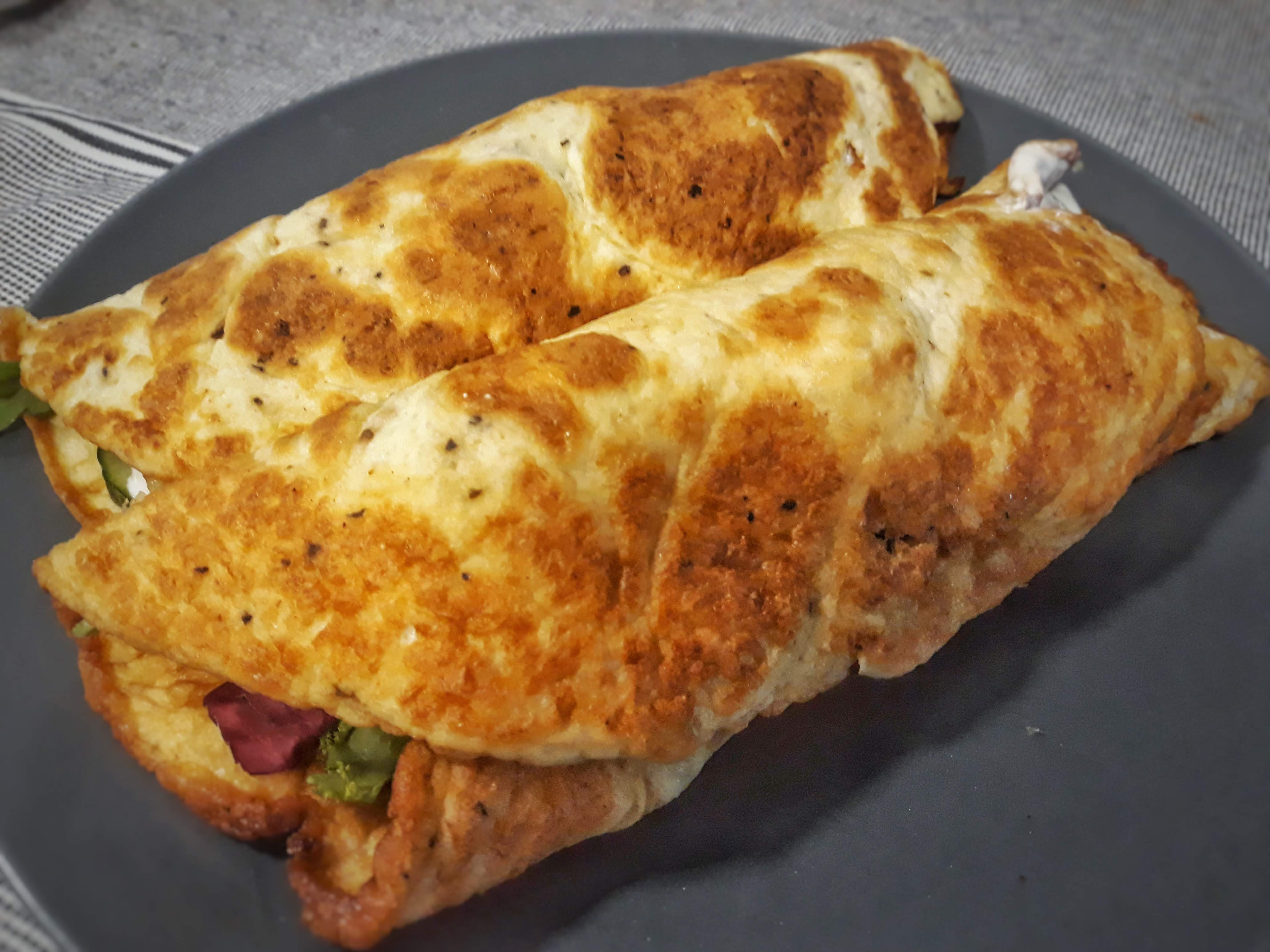 Numa taça, juntar e bater todos os ingredientes até obter uma massa homogénea. Aquecer uma frigideira média com um pouco de manteiga, azeite ou óleo de coco e deitar colheradas da massa (não se esqueçam que a massa dá para 4 wraps). Tapar a frigideira e cozinhar em lume médio-baixo. Assim que a parte superior estiver mais sólida, virar e deixar cozinhar do outro lado, apenas durante um minuto (ou menos). Retirar para um prato e reservar.